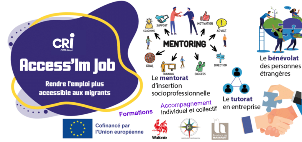 Access’Im Job est un projet ISP du CIMB co-financé par l’Union européenne et qui a pour but de rendre l’emploi plus accessible aux migrants, au travers de divers programmes mis en place par le CIMB :