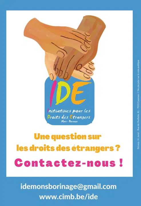 Nous sommes un ensemble d’associations et de mouvements de la région de Mons-Borinage qui ont décidé de travailler en réseau. Les associations et mouvements qui adhèrent à IDE, se préoccupent au quotidien de la situation des personnes étrangères ou d’origine étrangère. Les associations et mouvements membres du réseau IDE sont actifs dans au moins un des trois axes de travail suivants :