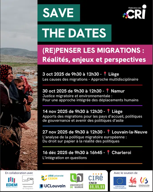 De septembre à décembre 2025, les Centres Régionaux pour l’Intégration de Wallonie, en partenariat avec plusieurs universités, vous invitent à un cycle de conférences sur les enjeux migratoires contemporains : causes, justice environnementale, politiques européennes, intégration… rencontre et un décryptage de l’accord Arizona et des principales mesures du volet « asile et migrations » de l’accord de gouvernement, avec et par Sotiega Ngo, Directrice du Ciré (Coordination et Initiatives pour Réfugiés et Etrangers) .